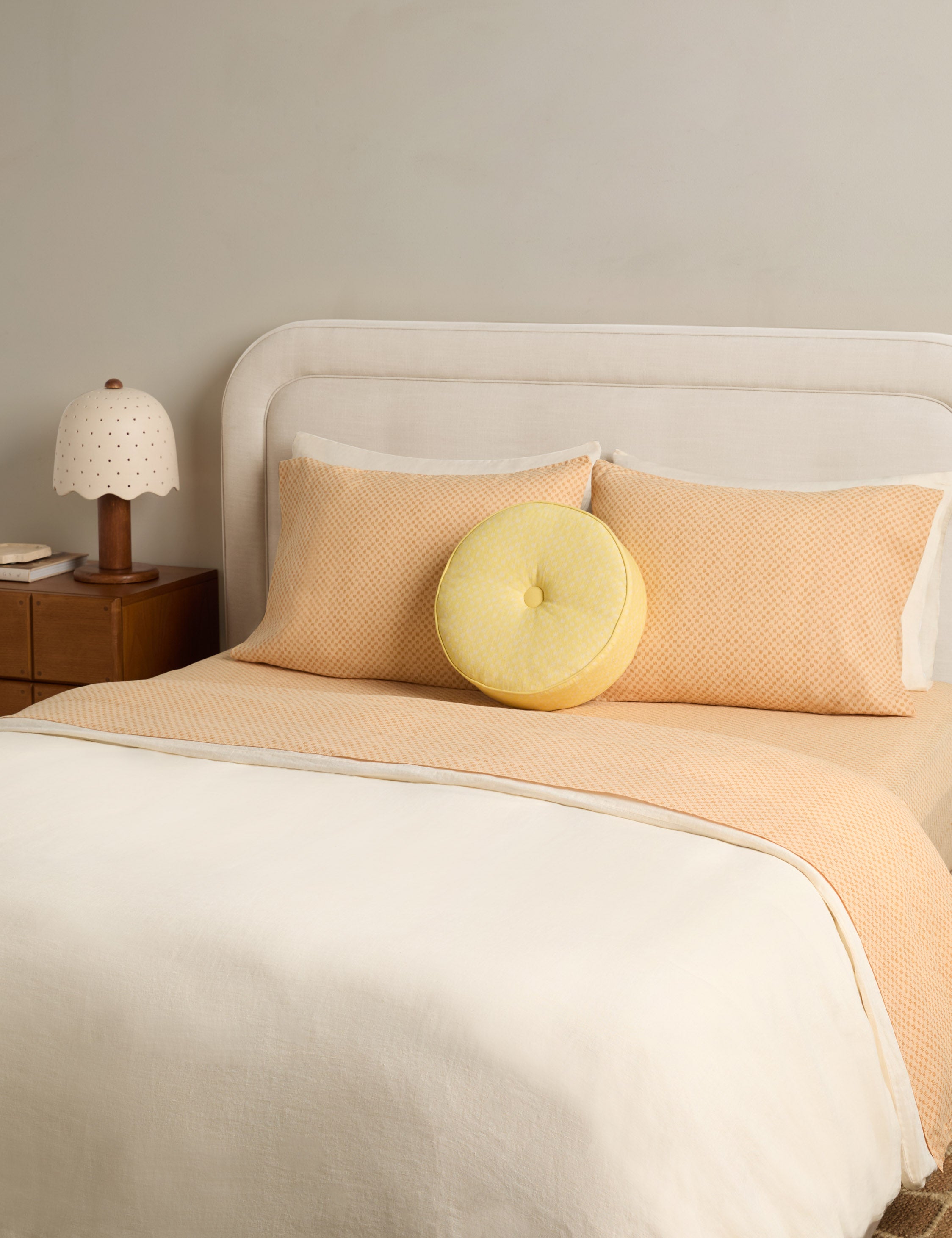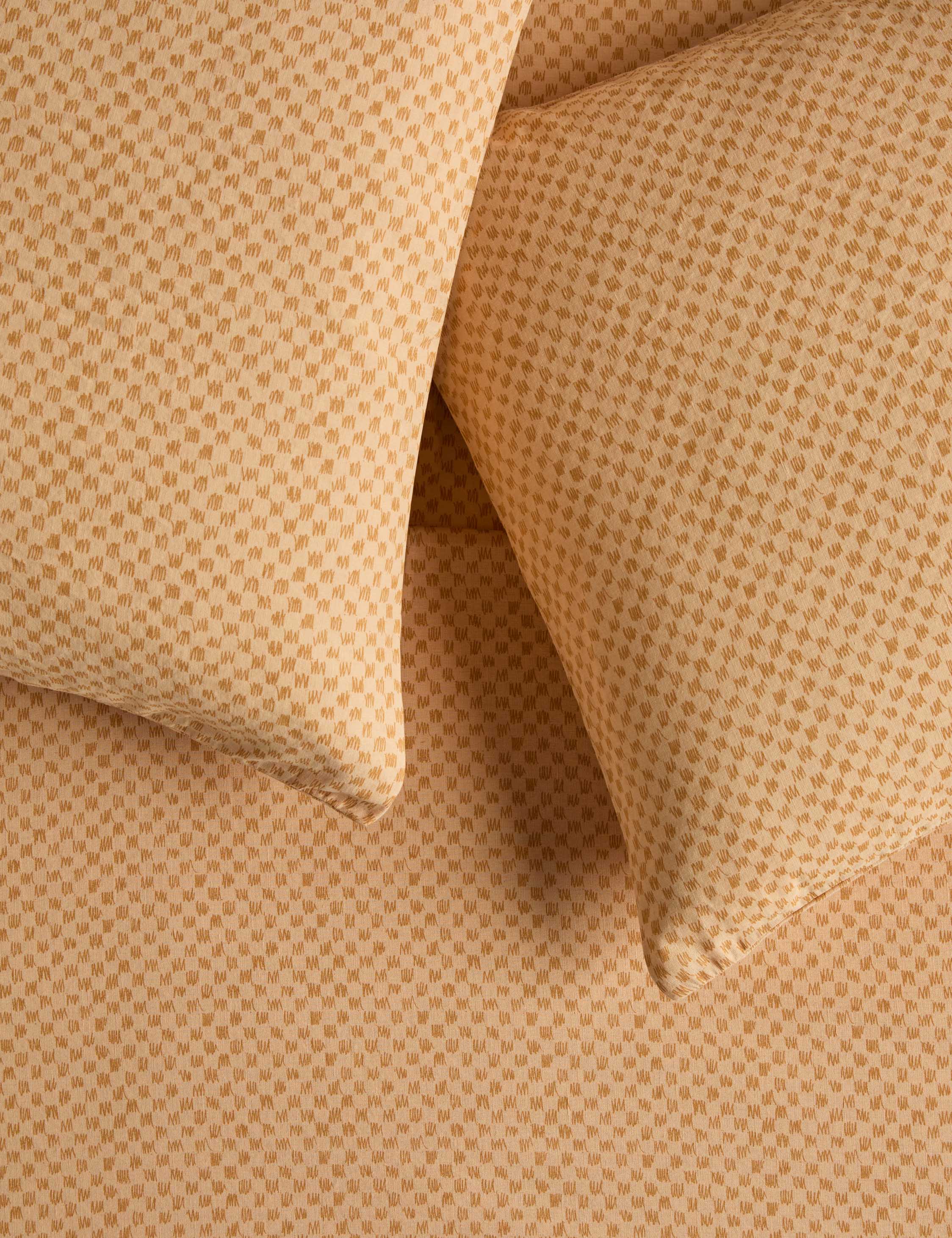 Kuvio brings a hand-drawn take to the classic checkerboard. The sheet set layers graphic interest into your bedscape for a fresh touch of pattern. This bedding collection is from our exclusive Sarah Sherman Samuel collaboration and features all the trademarks of her warm, edited style.