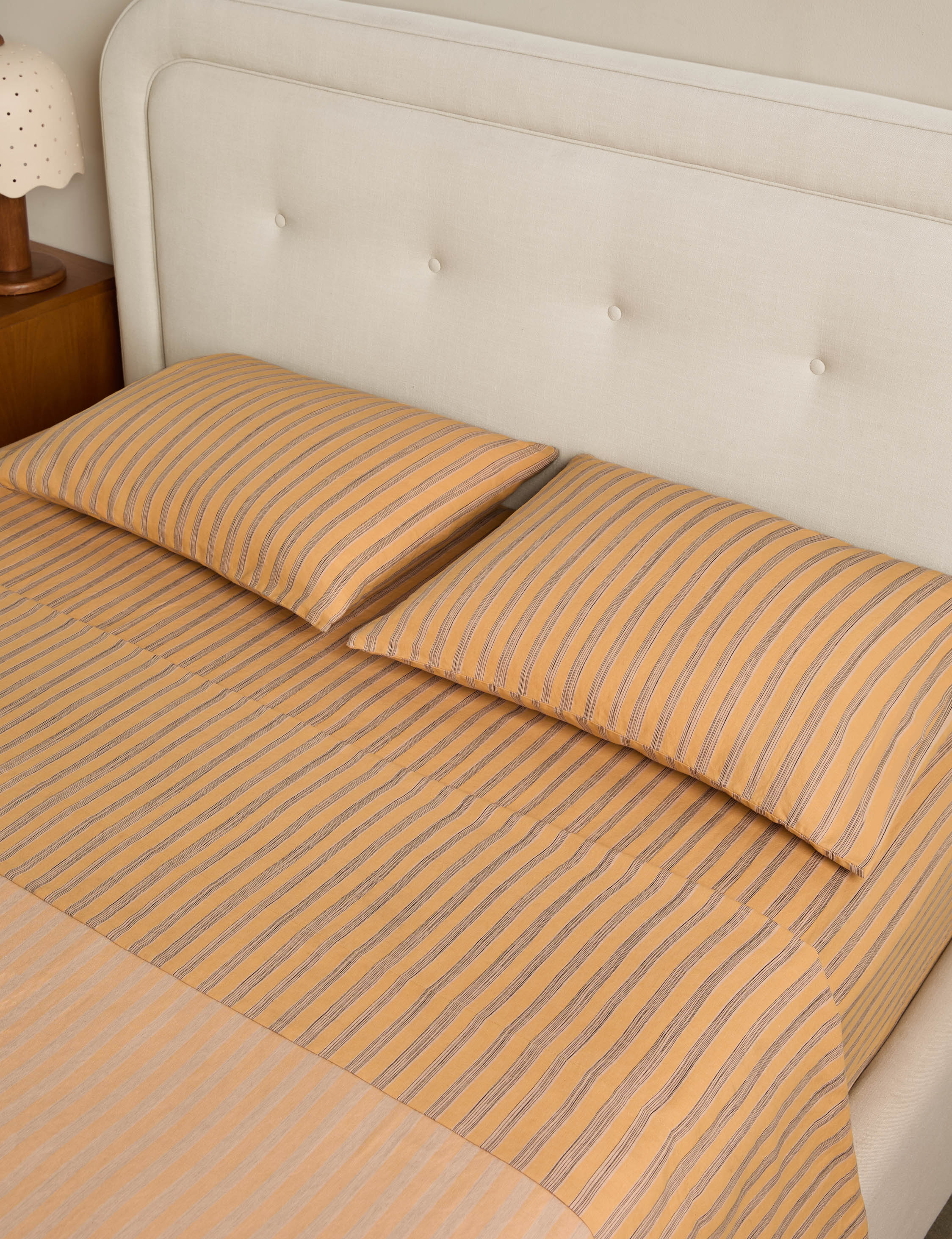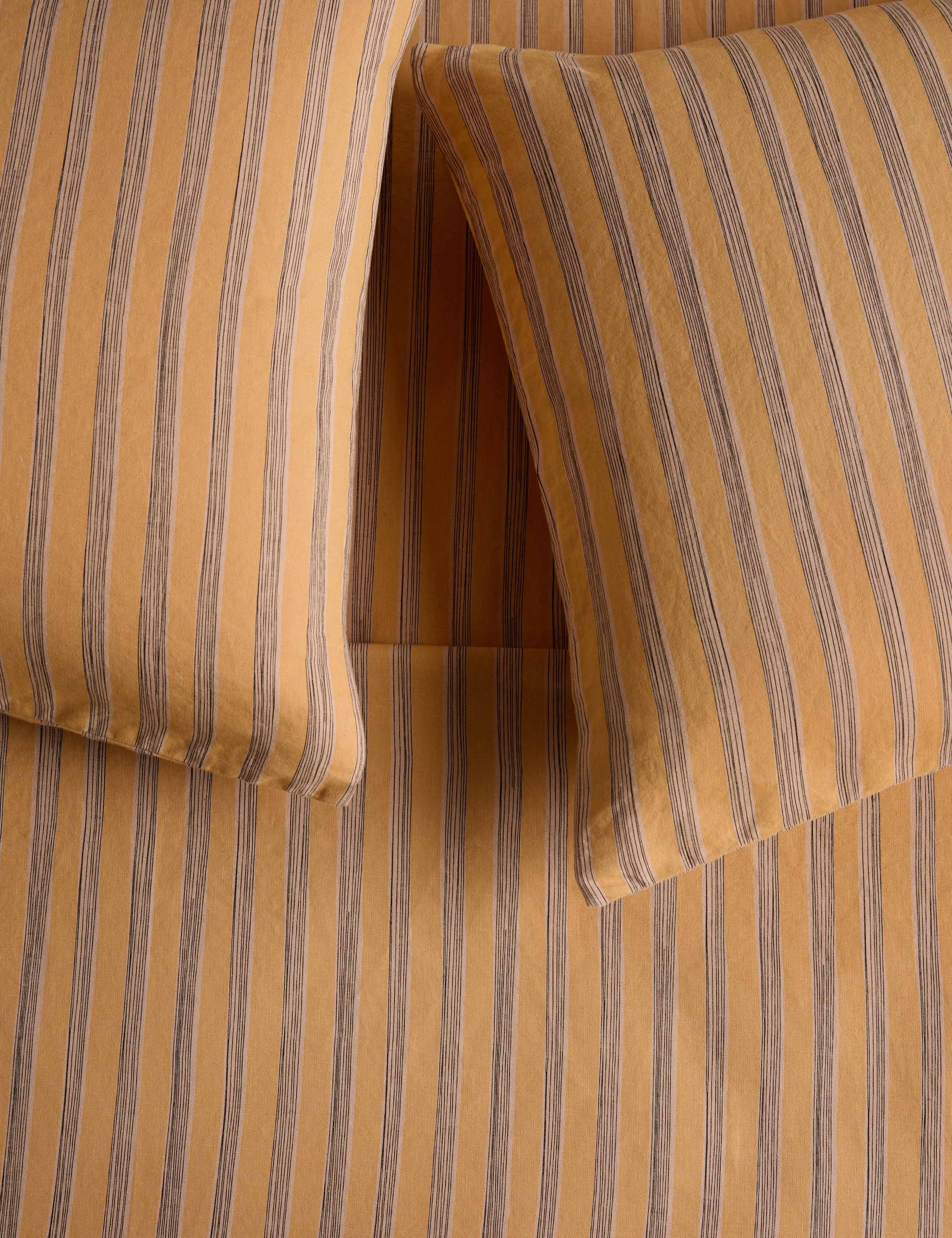 Oja is defined by a tailored stripe for a fresh touch of pattern with timeless appeal. The sheet set underpins your bed with understated elegance and a soft linen blend. This bedding collection is from our exclusive Sarah Sherman Samuel collaboration and features all the trademarks of her warm, edited style.