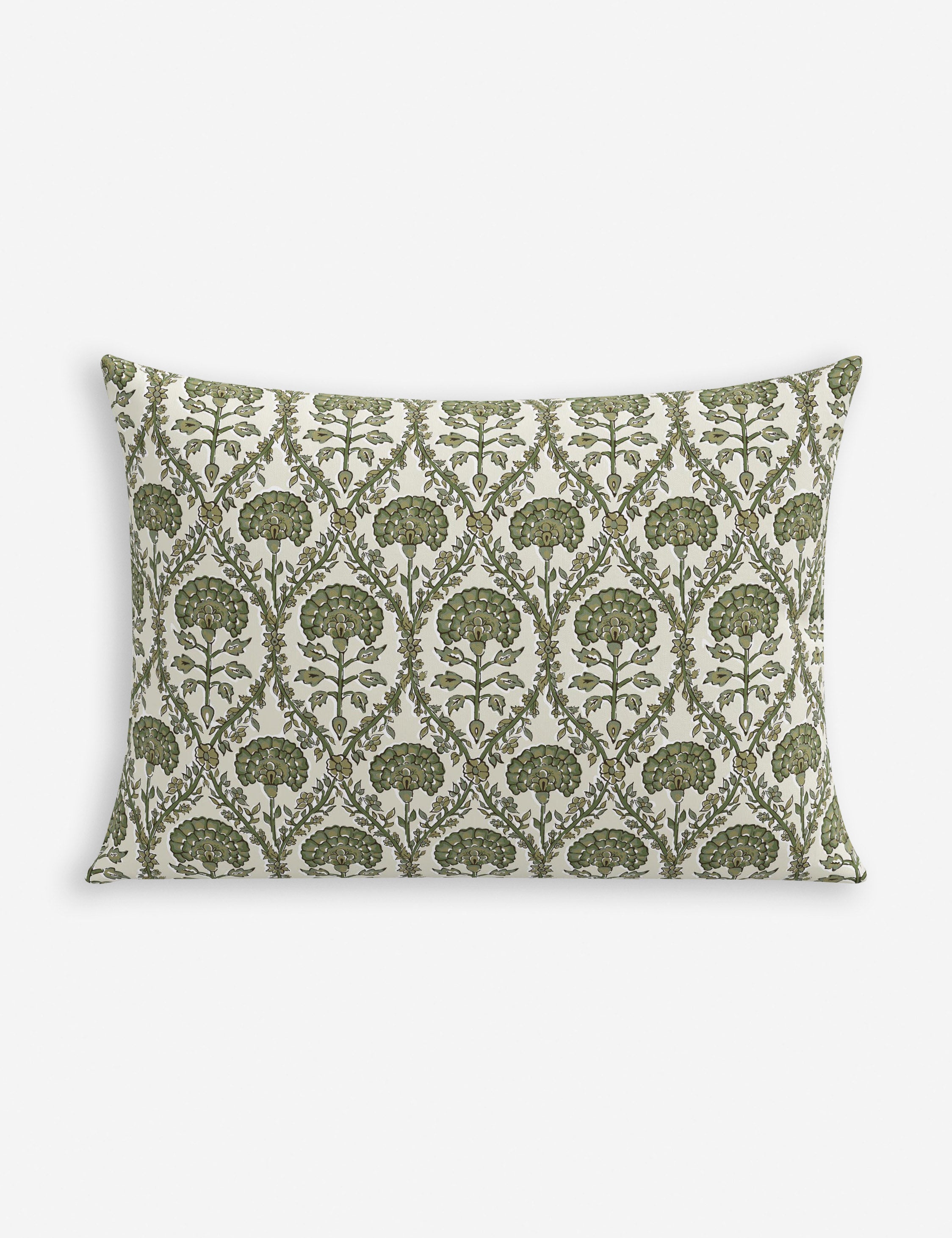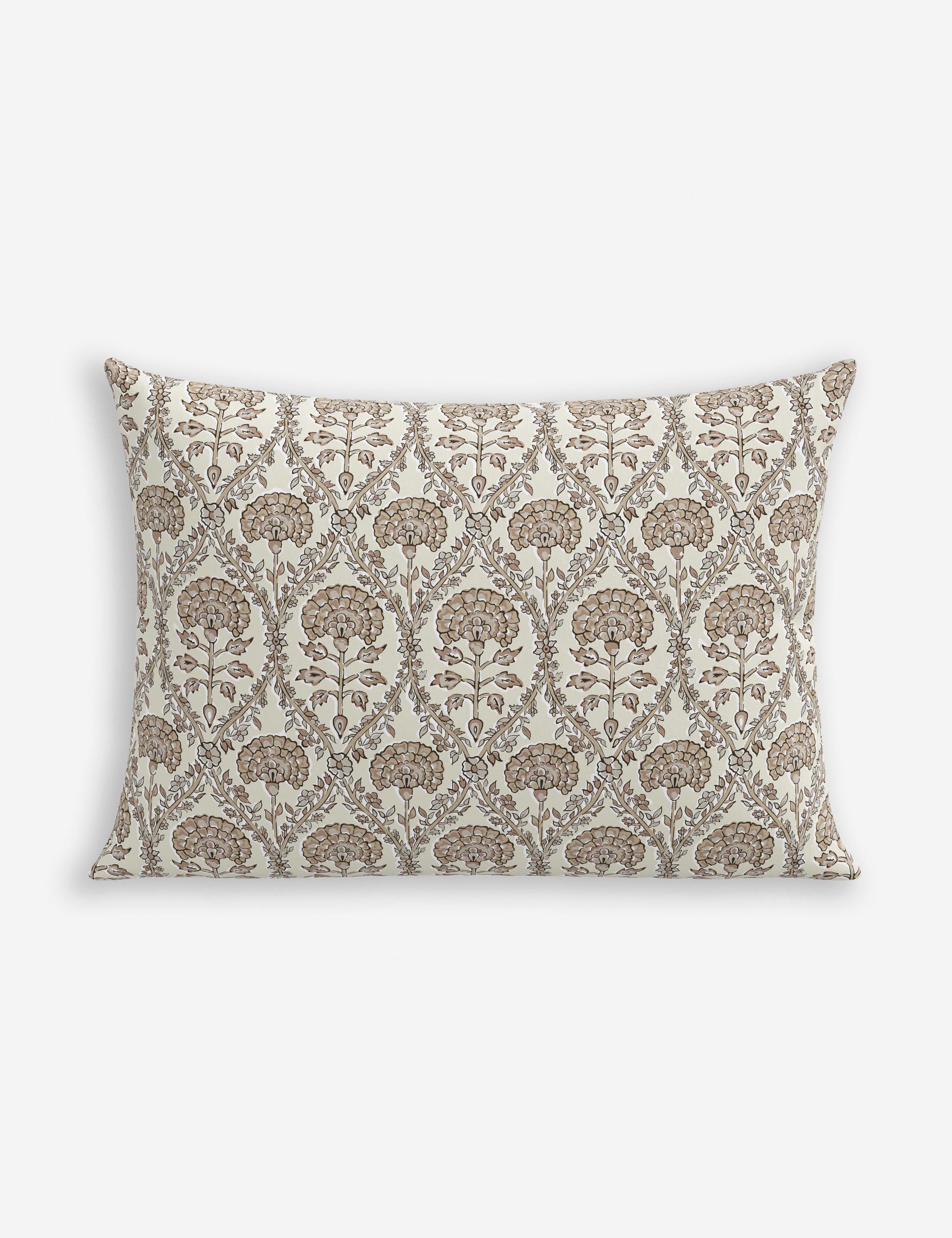 Add a fresh touch of charm to the room with the Barerra pillow. The block print design features an intricate floral motif that brings rich visual texture to any seat. We love this decorative pillow for a traditional note in a transitional or vintage-inspired curation indoors or out.