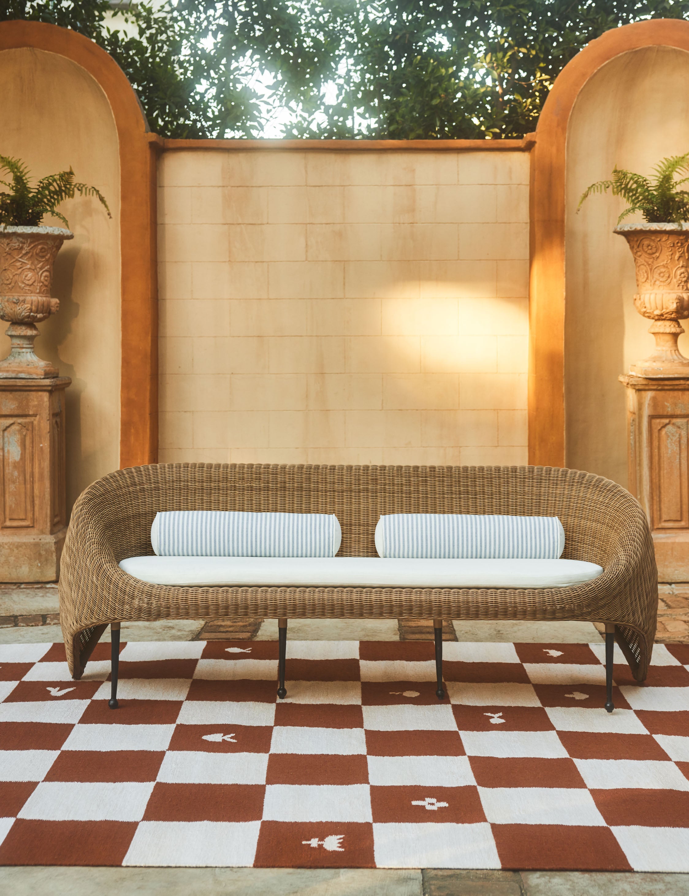 Make it a signature season with Sarah Sherman Samuel's all-new outdoor collection. The Littu bolster pillow features a striped design that adds a touch of pattern to any seat, perfect in pairs on an outdoor sofa. This outdoor accent pillow is from our exclusive collaboration and features all the trademarks of her warm, edited style.