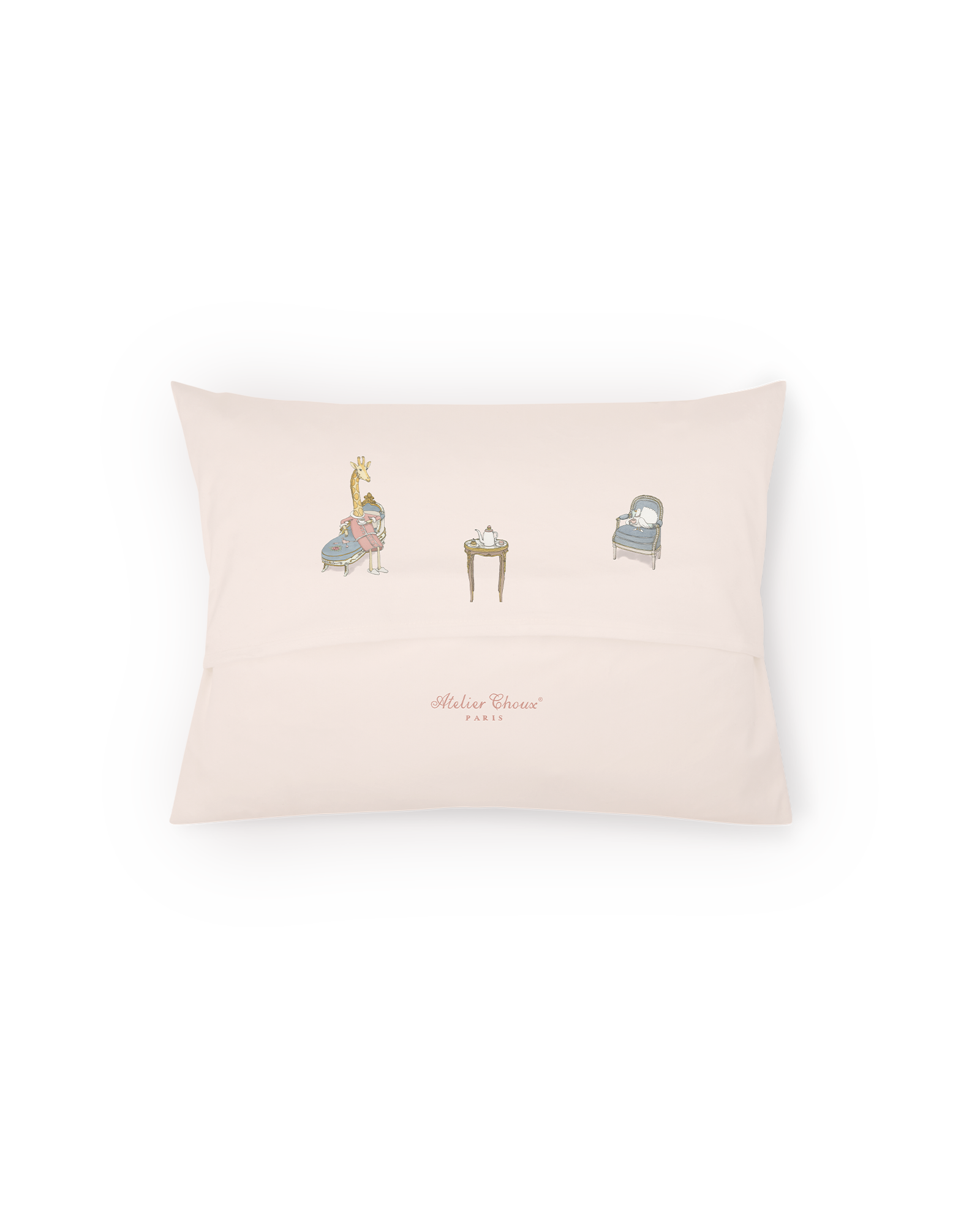 Atelier Choux Satin Cushion - French Bedroom adds a playful yet elegant touch to any space. This soft, decorative accent cushion features whimsical illustrations on both sides and comes with a 100% anti-allergenic insert for immediate use.