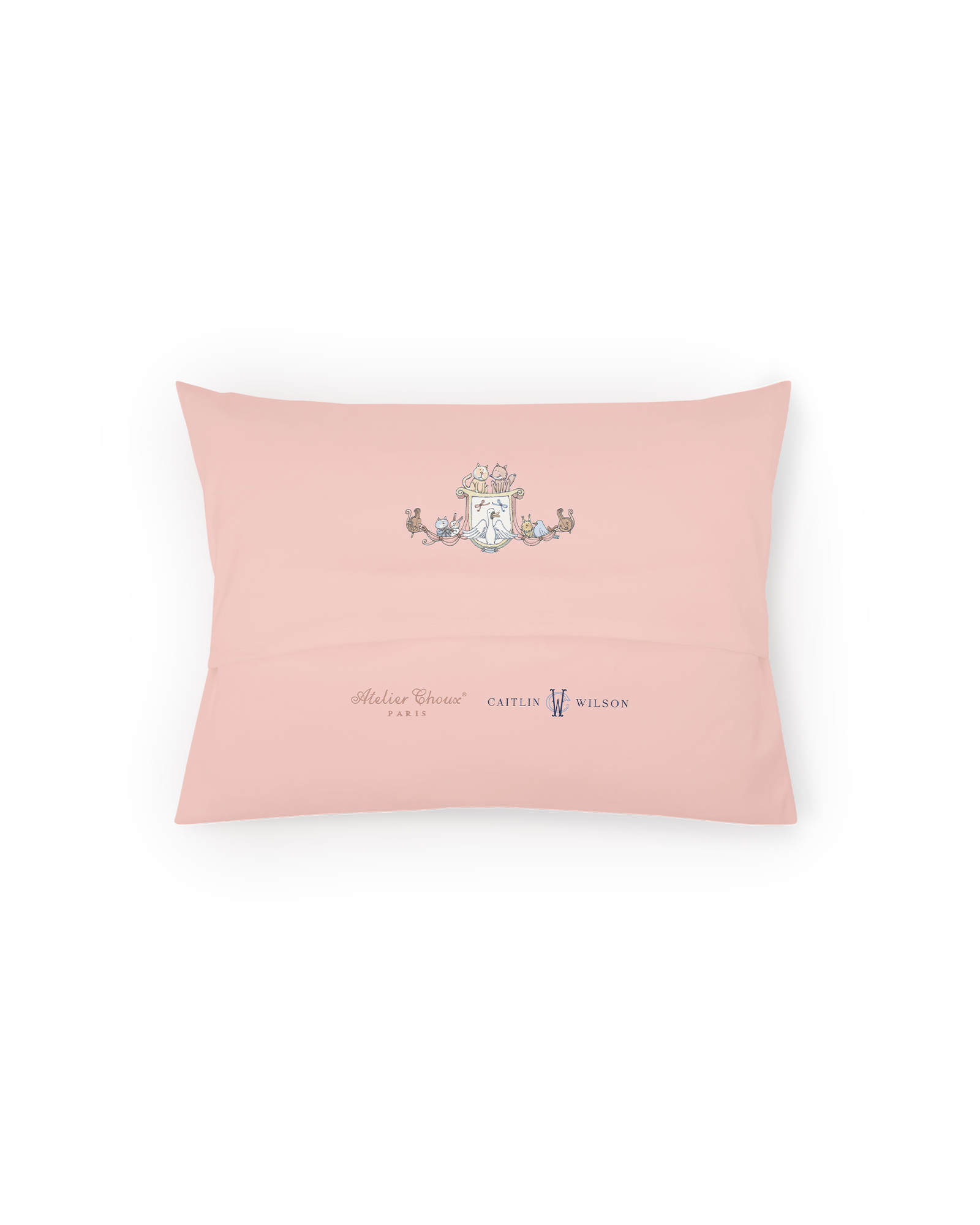 Atelier Choux Satin Cushion - Toile de Jouy Pink adds a playful yet elegant touch to any space. This soft, decorative accent cushion features whimsical illustrations on both sides and comes with a 100% anti-allergenic insert for immediate use.