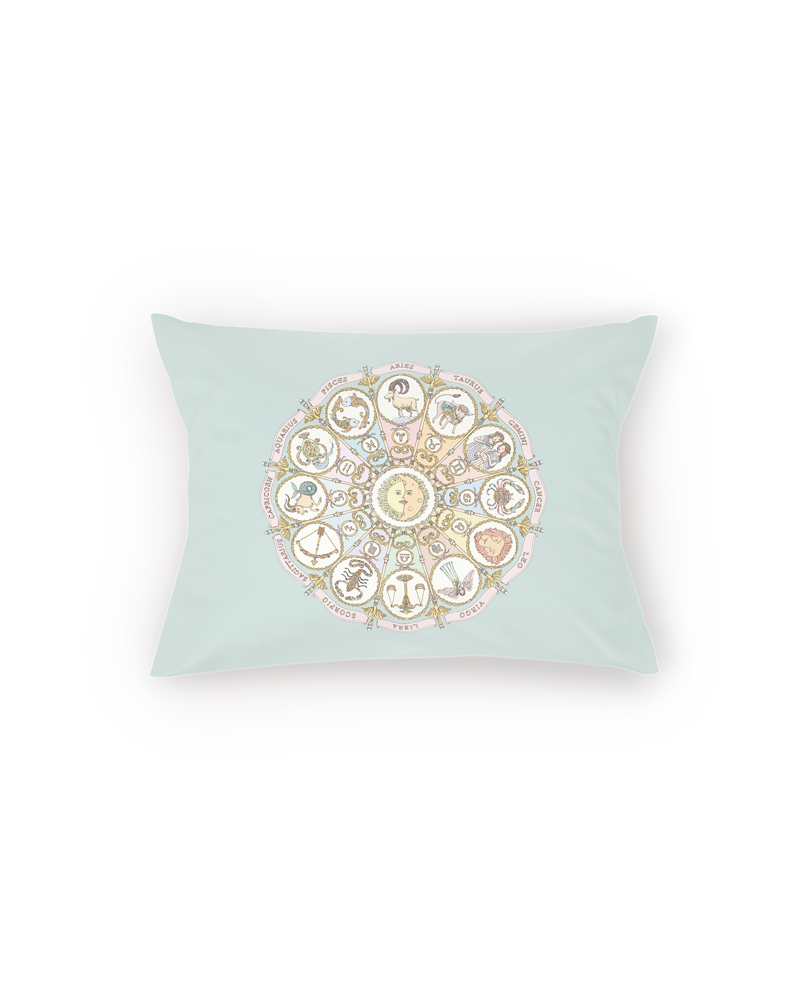 Atelier Choux Satin Cushion - Zodiac Blue adds a playful yet elegant touch to any space. This soft, decorative accent cushion features whimsical illustrations on both sides and comes with a 100% anti-allergenic insert for immediate use.